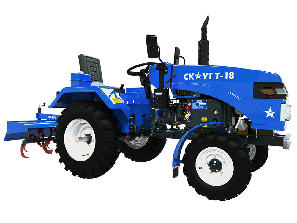 Список навески для данного трактора очень велик. Его можно использовать как коммунальную машину малого класса для уборки дворовой территории до 1Га. А просто сменив коммунальные орудия и повесив сельхоз агрегаты, этот малыш превратится в полевого трудягу, который и вспашет землю, и проборонует-прокультивирует, и картошку посадит и окучит, а потом и уберёт весь урожай с поля, расходуя при этом всего полтора литра дизеля в час.